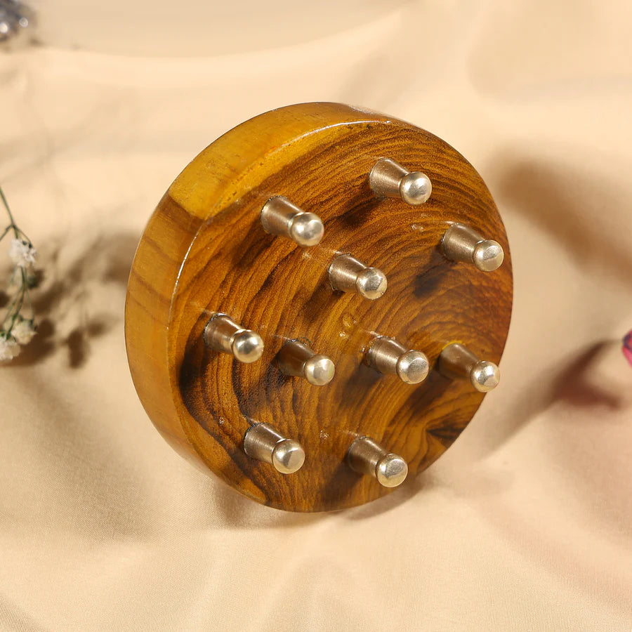 Begin with clean, dry skin or scalp. For best results, apply a few drops of Ayurvedic Hair Oilto the scalp orAyurvedic Body Oilto body area you plan to massage. This enhances the tool’s glide and helps improve nutrient absorption.